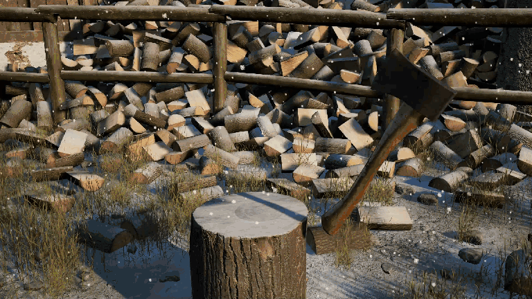 LineTrace 방식을 써서 보이는지를 탐색했는데 이 Trace가 이상하게 되어서 쌓인 장작 뒷부분에 구멍이 뚫리는 것이었다. 나무 수천 개를 팼는데 틈사이로 나무가 떨어져 나무가 잘 안 쌓이게 되었다.